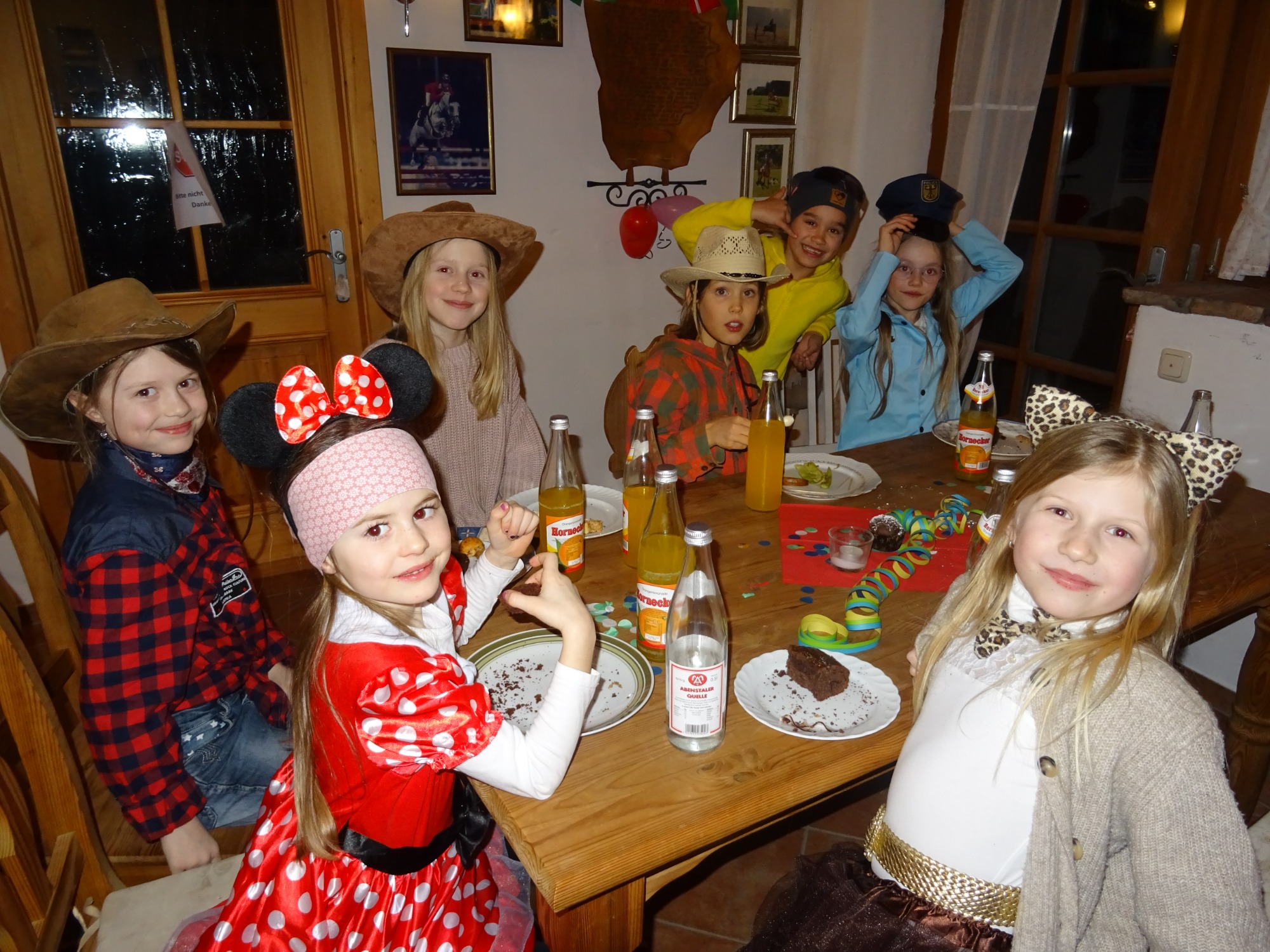 Traditionell luden die Fridolfinger Pferdefreunde am Rosenmontag zur Faschingsfeier des Therapiereitens nach Rothanschöring ins gemütliche Reiterstüberl der Familie Meindl ein. Zahlreiche maskierte Rosserer kamen und trugen mit allerlei Leckereien zu einem bunten Häppchenbuffet bei. Auch die Kirchheimer Theatergruppe sowie KFZ Peter Plank mit Familie erschienen, um mitzufeiern. Bereits zum sechsten Mal zog die FaschingsRemmiDemmiMusik aus Anschöring mit lustigen Liedern ein und spielten, als Pumuckl und Meister Eder verkleidet, fetzig auf!