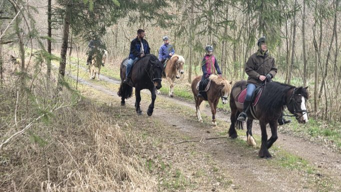 Durch den „Zauberwald“ mit herrlich duftenden Bärlauchfeldern ritten wir zu einer kurzen Schnapseinkehr.