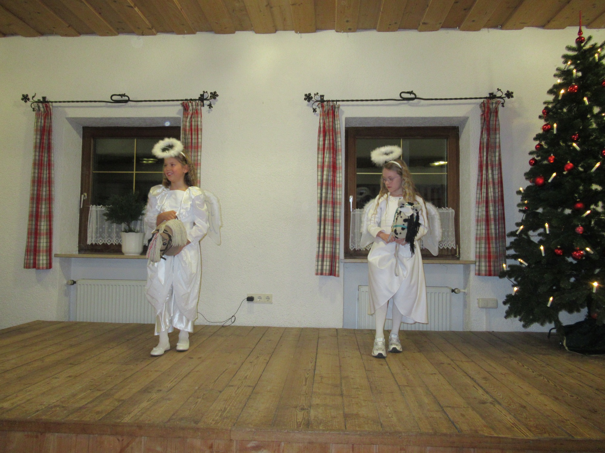Am vierten Advent feierten die Pferdefreunde ihre Weihnachtsfeier im Gasthof Gruber in Pietling. Nach einem musikalischen Auftakt an der Harfe begrüßte Vorsitzender Franz Mayer die vielen Gäste. Für besinnliche und heitere Momente sorgten Geschichten, Musik und Harfenstücke – darunter der Jugend-Pferdefreundechor mit „Afterglow“, die humorvolle „Apfent“-Geschichte sowie „Haselnüsse für Aschenbrödel“. Solopassagen im Lied „Weihnachten als Kind“ ließen Gänsehaut aufkommen, und ein selbst verfasstes Gedicht von Christa Kräbl regte zum Nachdenken an. Besonderer Höhepunkt war die Überraschung zum Schluss: Valentina Fellner und Milla Wenzel galoppierten als Engerl auf Steckenpferden durch den Saal und zeigten ein Pas de Deux. Das Publikum spendete kräftigen Applaus.