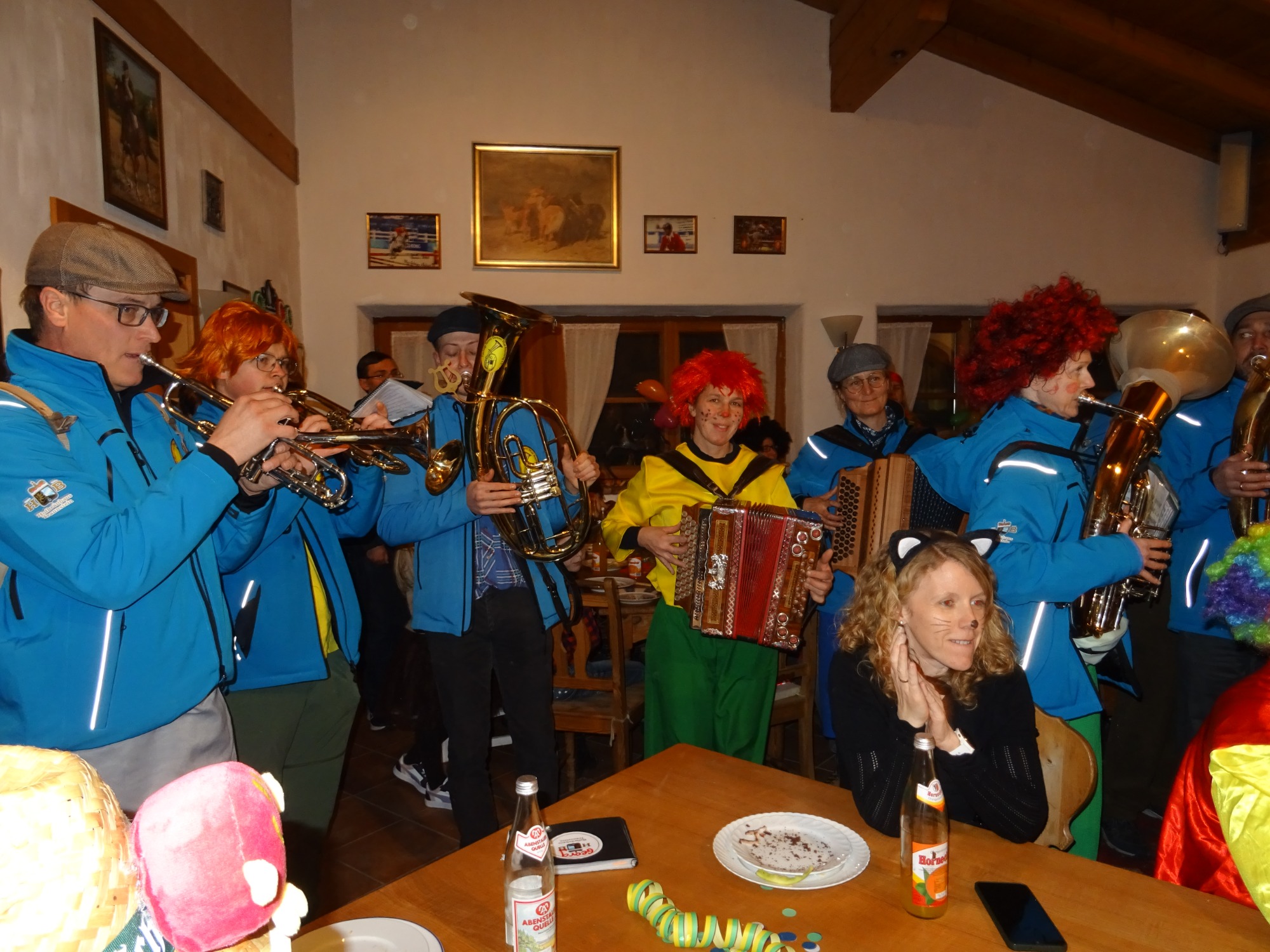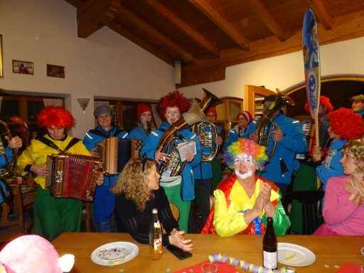 Am Faschingsmontag fand wie jedes Jahr die Faschingsfeier der Therapiereiter statt, zu der auch zahlreiche Mitglieder der Fridolfinger Pferdefreunde erschienen waren. Jeder trug zu einem kunterbunten Häppchen-Buffet mit saurer und süßer Auswahl bei. Als Highlight des Abends zogen die vielen lustigen Musikanten der FaschingsRemmiDemmiMusik Anschöring e. V. ins Reiterstüberl der Familie Meindl ein und sorgten mit fetziger Faschingsmusik für Stimmung.